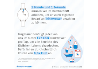 Wir alle nutzen täglich Wasser um zu duschen, die Wäsche zu waschen, die Toilette zu spülen und natürlich um damit zu kochen oder es zu trinken. Im Mittel benötigt dazu jeder von uns 127 Liter pro Tag. Diese Menge an Trinkwasser aus der Leitung kostet in Deutschland im Durchschnitt 34 Cent.