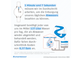 Wir alle nutzen täglich Wasser um zu duschen, die Wäsche zu Waschen, die Toilette zu spülen und natürlich um damit zu kochen oder es zu trinken. Im Mittel benötigt dazu jeder von uns 127 Liter pro Tag, die als Abwasser in der Kanalisation abgeleitet und in der Kläranlage behandelt werden. Für die Entsorgung dieser Wassermenge fallen in Deutschland durchschnittlich 37 Cent an.
