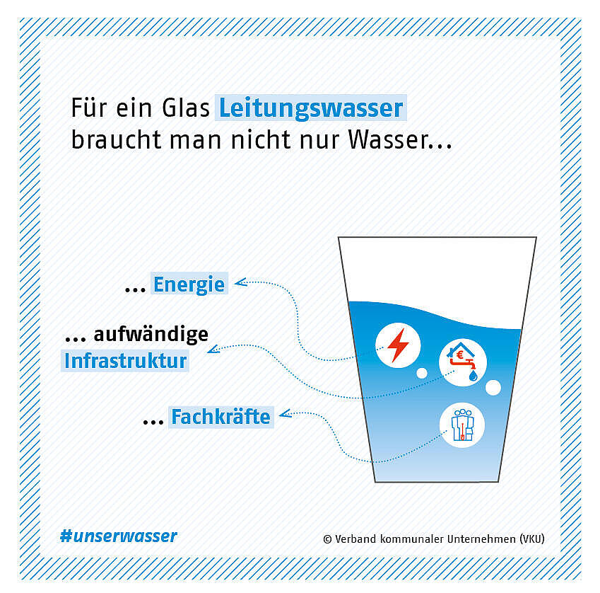 Was wird alles gebraucht, damit das Trinkwasser aus dem Wasserhahn kommt und das Abwasser sicher entsorgt wird?